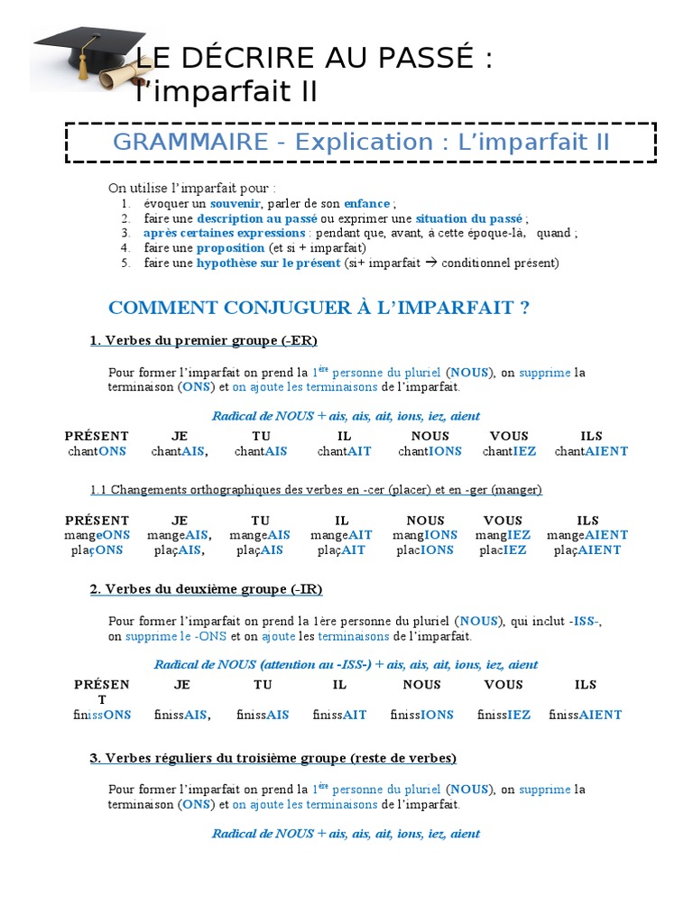 Le Francais Avec Madame Tessier 43 L Imparfait from 1.bp.blogspot.com L'imparfait de l'indicatif exprime une action dans le passé dont la durée n'est pas définie, une action qui se répète ou une simple description. Il sera ajouté à la liste d'exercices divers. Conjuguez correctement les verbes dans les phrases suivantes au temps demandé. Translate manger in context, with examples of use and definition. Il est important de savoir comment conjuguer et surtout quand employer l'imparfait de l'indicatif avec le verbe manger. Je mangeais tu mangeais il mangeait nous mangions vous mangiez ils mangeaient. Conjugaison du verbe manger au subjonctif. Manger à la forme affirmative manger à la forme affirmative au féminin manger à la forme négative manger à la forme.